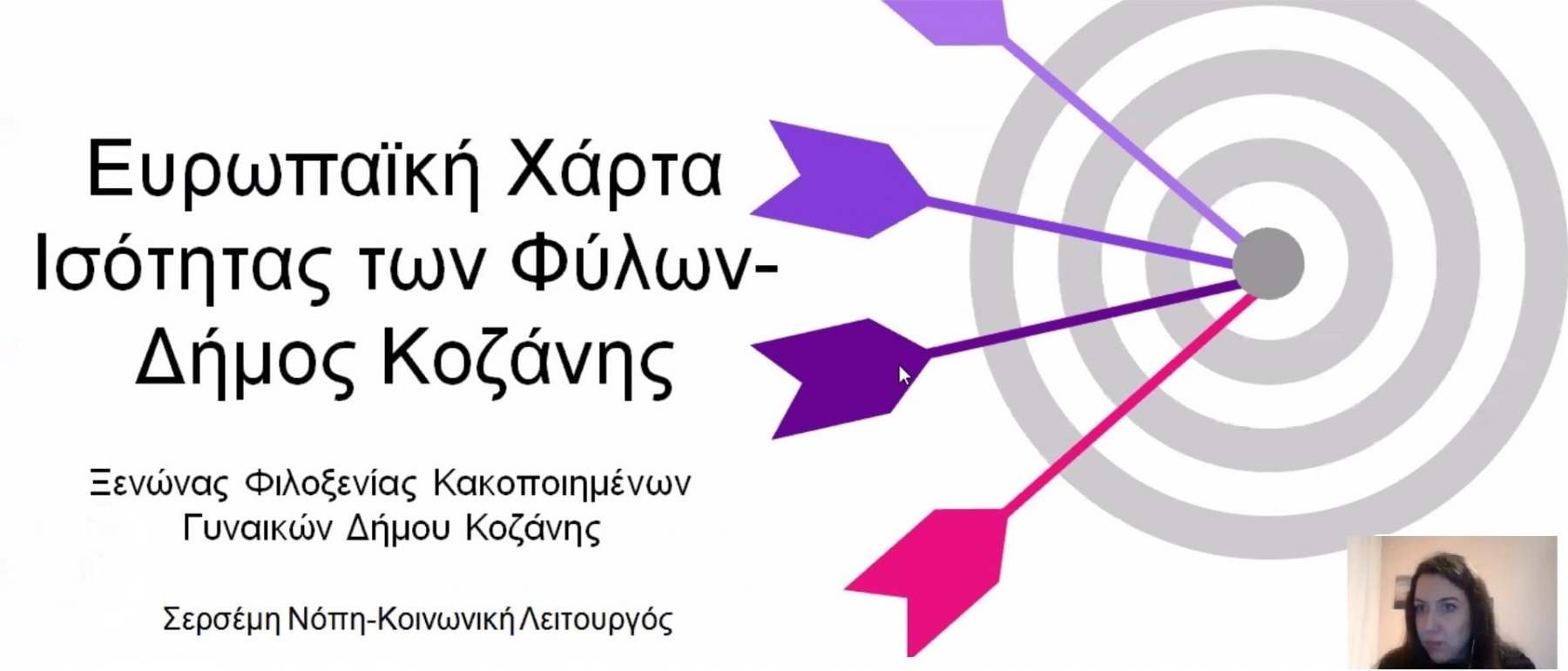 👪Παράλληλα, γνωστοποιήθηκε στα μέλη η Ευρωπαϊκή Χάρτα Ισότητας των Φύλων, την οποία έχει υπογράψει ο Δήμος Κοζάνης, ενώ παρουσιάστηκαν και οι δομές του Δήμου.