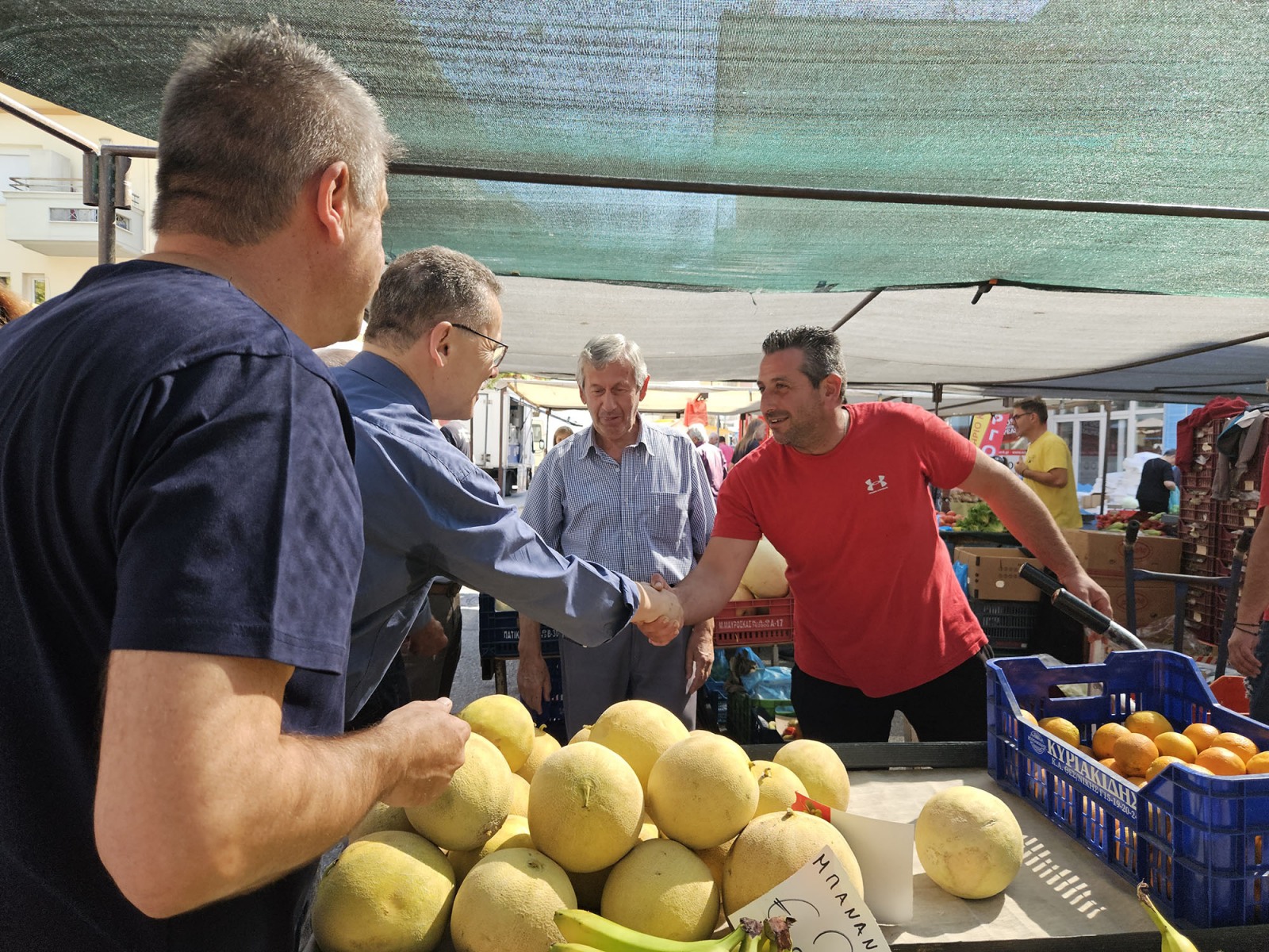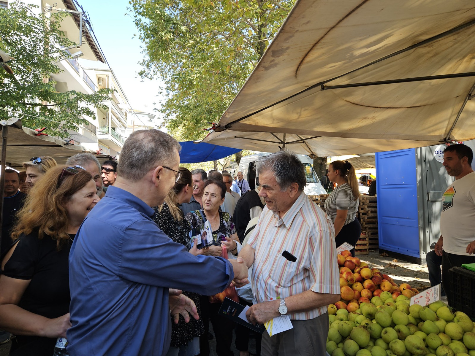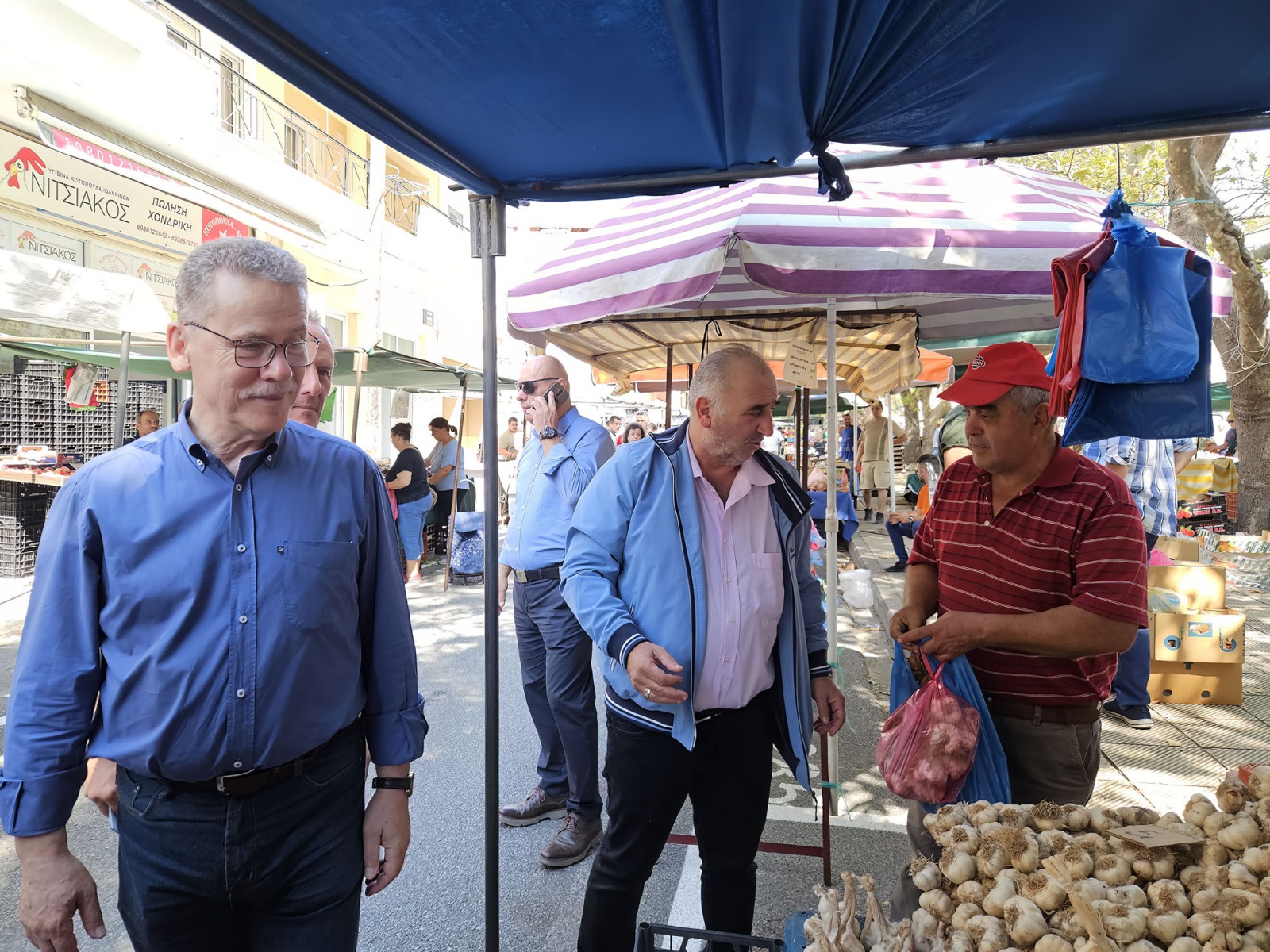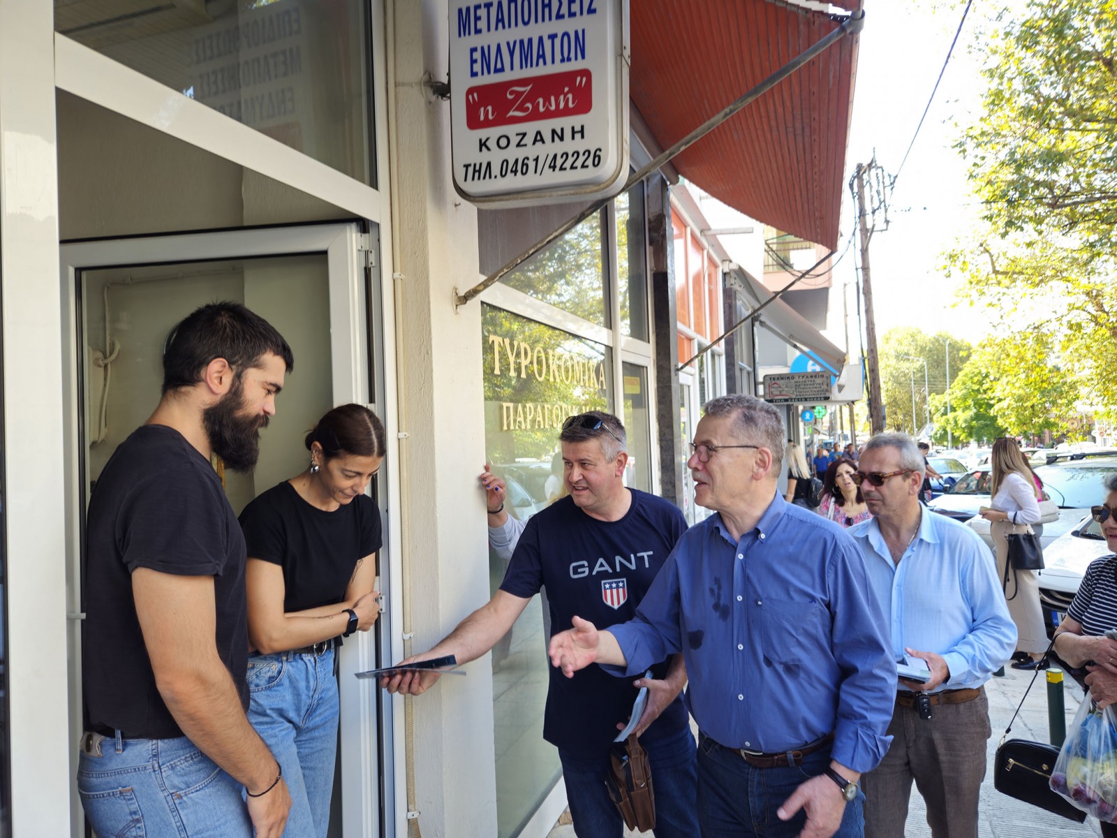 Με παραγωγούς, εμπόρους και καταστηματάρχες συνομίλησε ο Λάζαρος Μαλούτας, κατά την περιήγησή του στη λαϊκή αγορά Αριστοτέλους, καθώς και σε καταστήματα του κέντρου της πόλης της Κοζάνης, το πρωί του Σαββάτου.