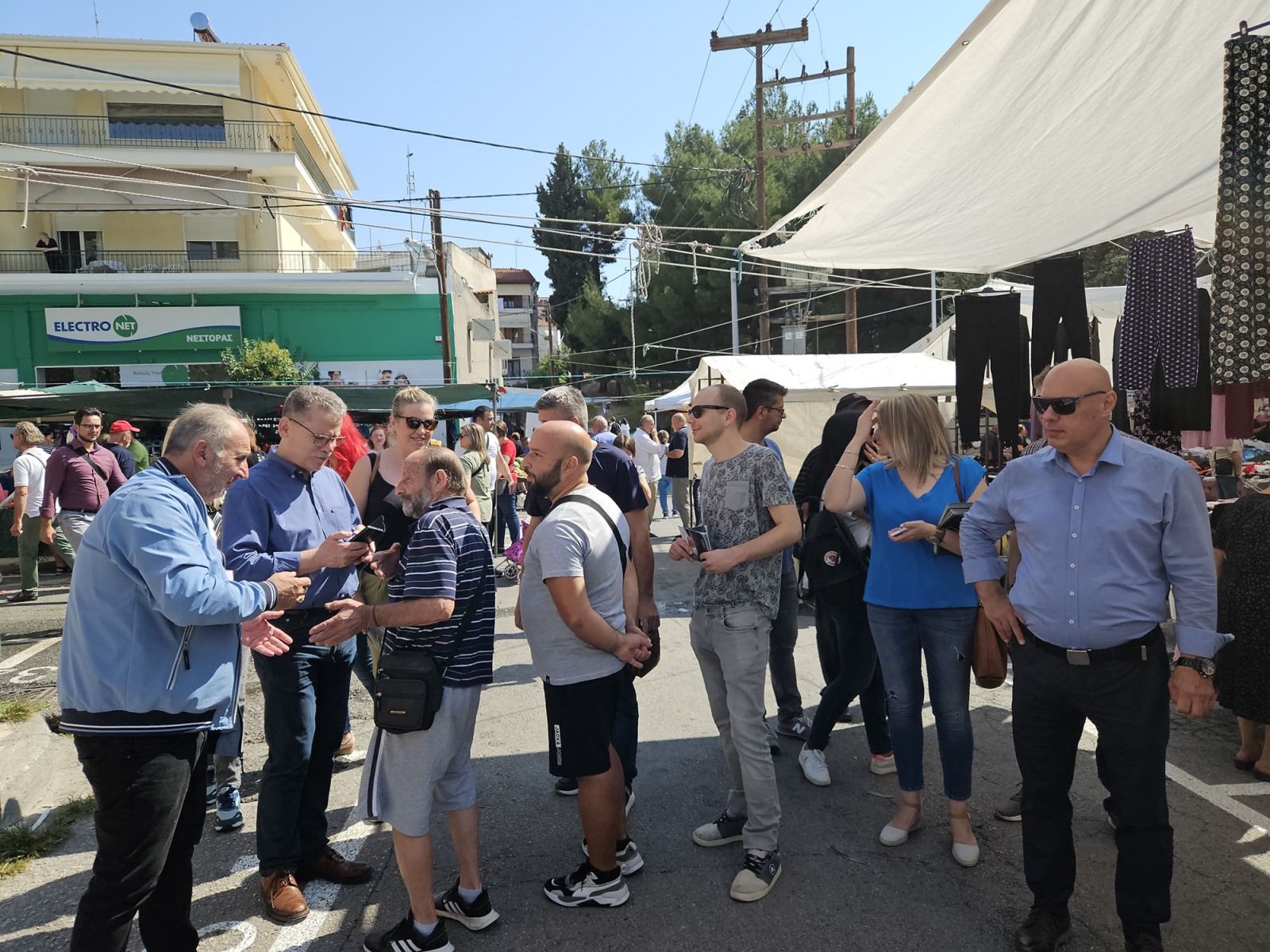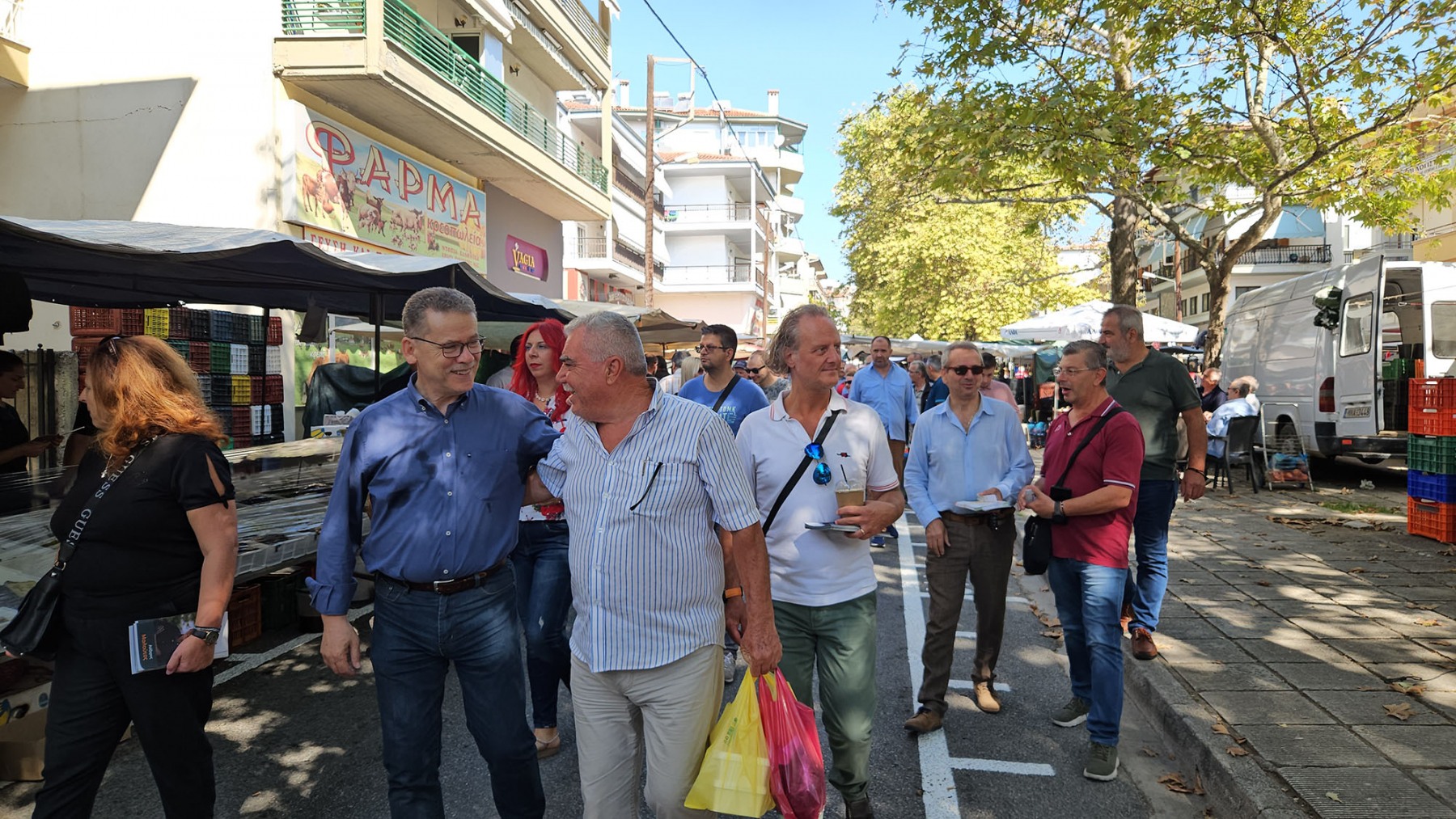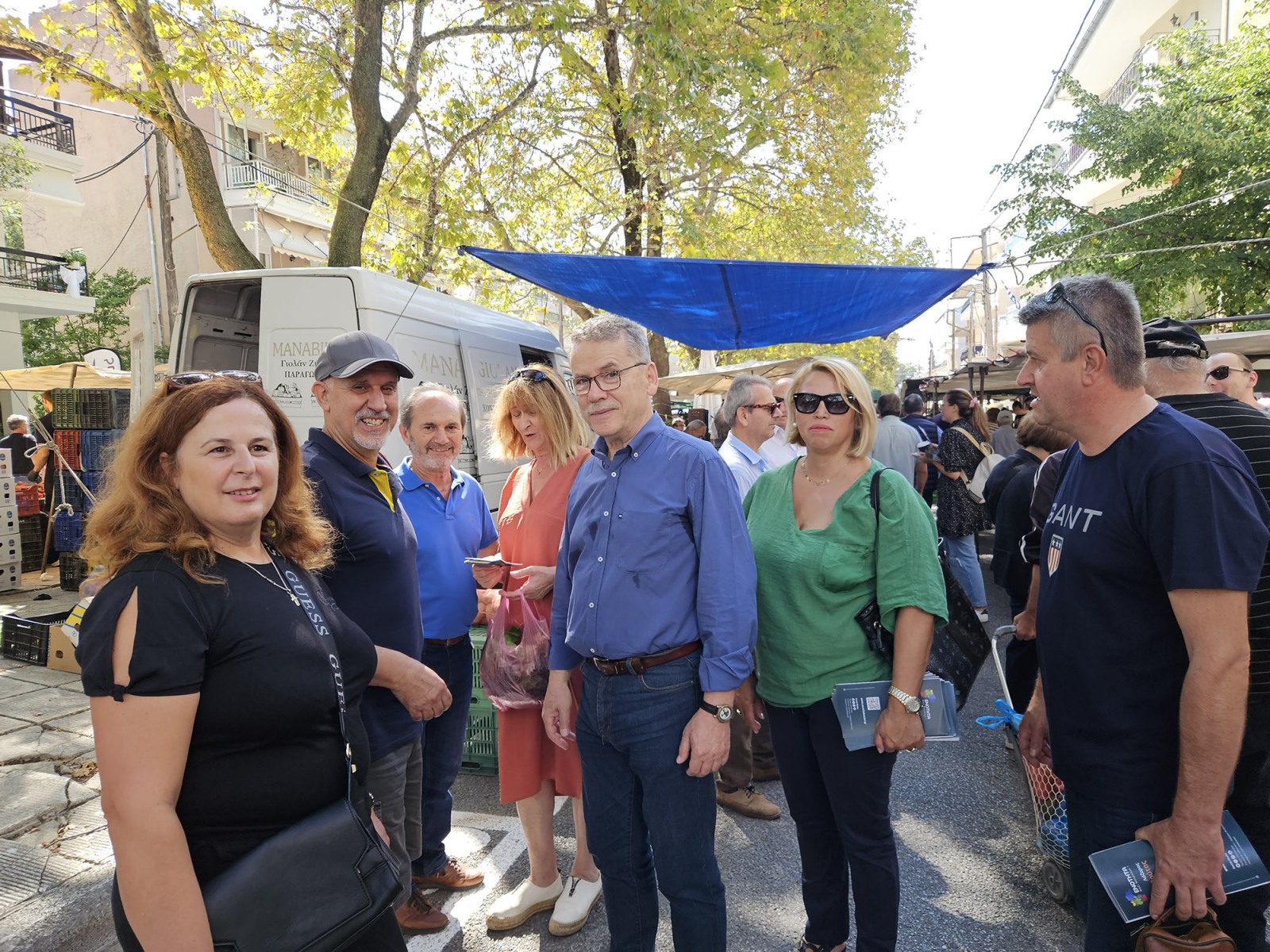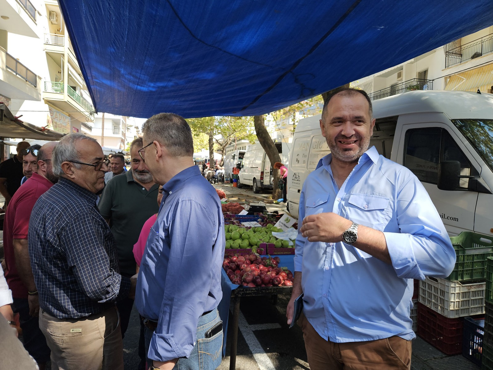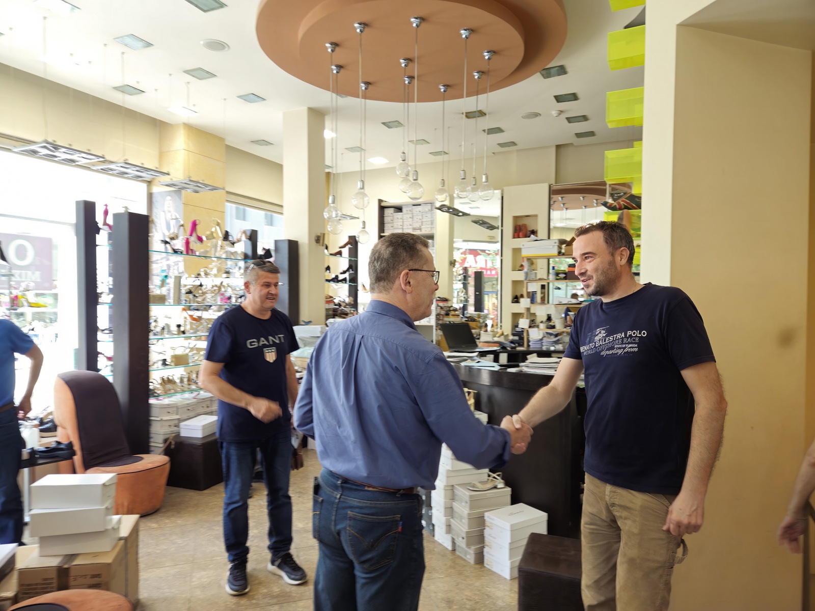 Με παραγωγούς, εμπόρους και καταστηματάρχες συνομίλησε ο Λάζαρος Μαλούτας, κατά την περιήγησή του στη λαϊκή αγορά Αριστοτέλους, καθώς και σε καταστήματα του κέντρου της πόλης της Κοζάνης, το πρωί του Σαββάτου.