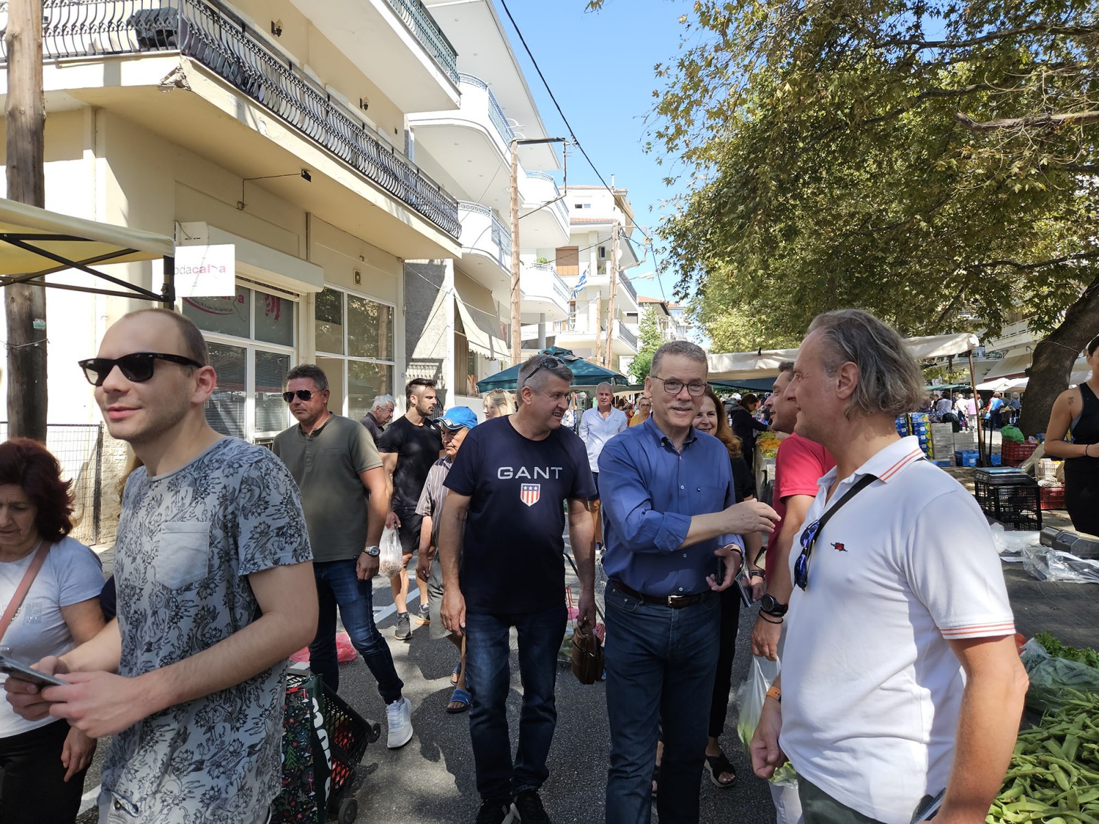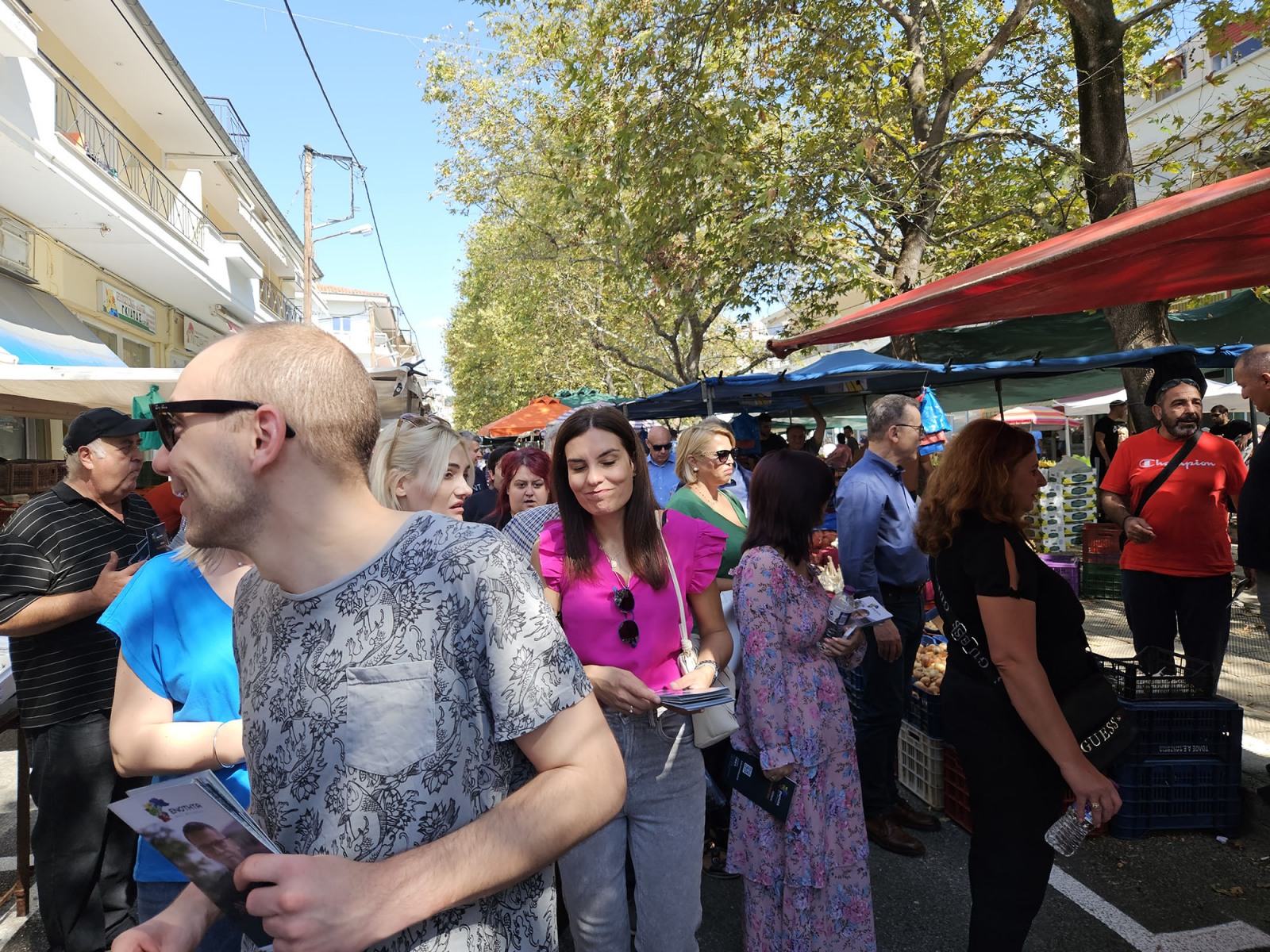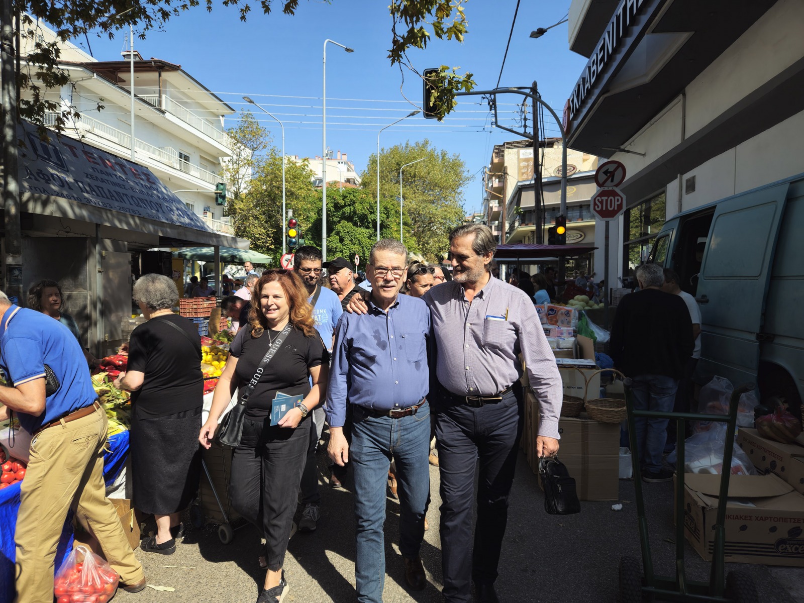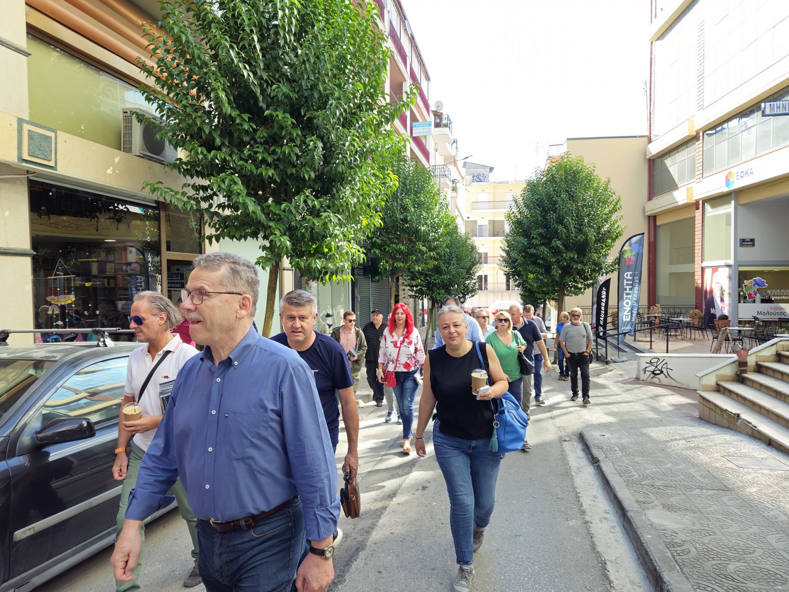Με παραγωγούς, εμπόρους και καταστηματάρχες συνομίλησε ο Λάζαρος Μαλούτας, κατά την περιήγησή του στη λαϊκή αγορά Αριστοτέλους, καθώς και σε καταστήματα του κέντρου της πόλης της Κοζάνης, το πρωί του Σαββάτου.