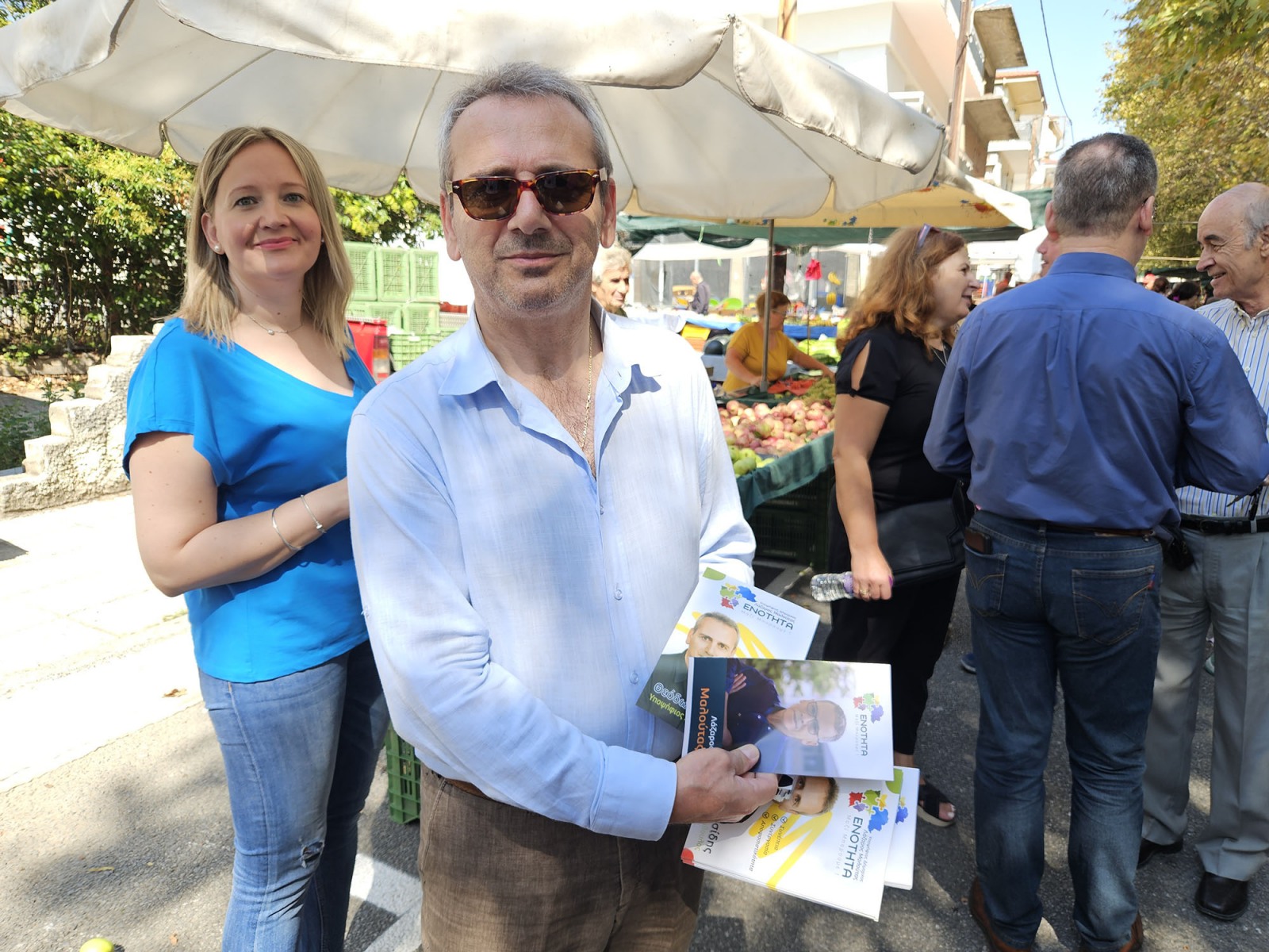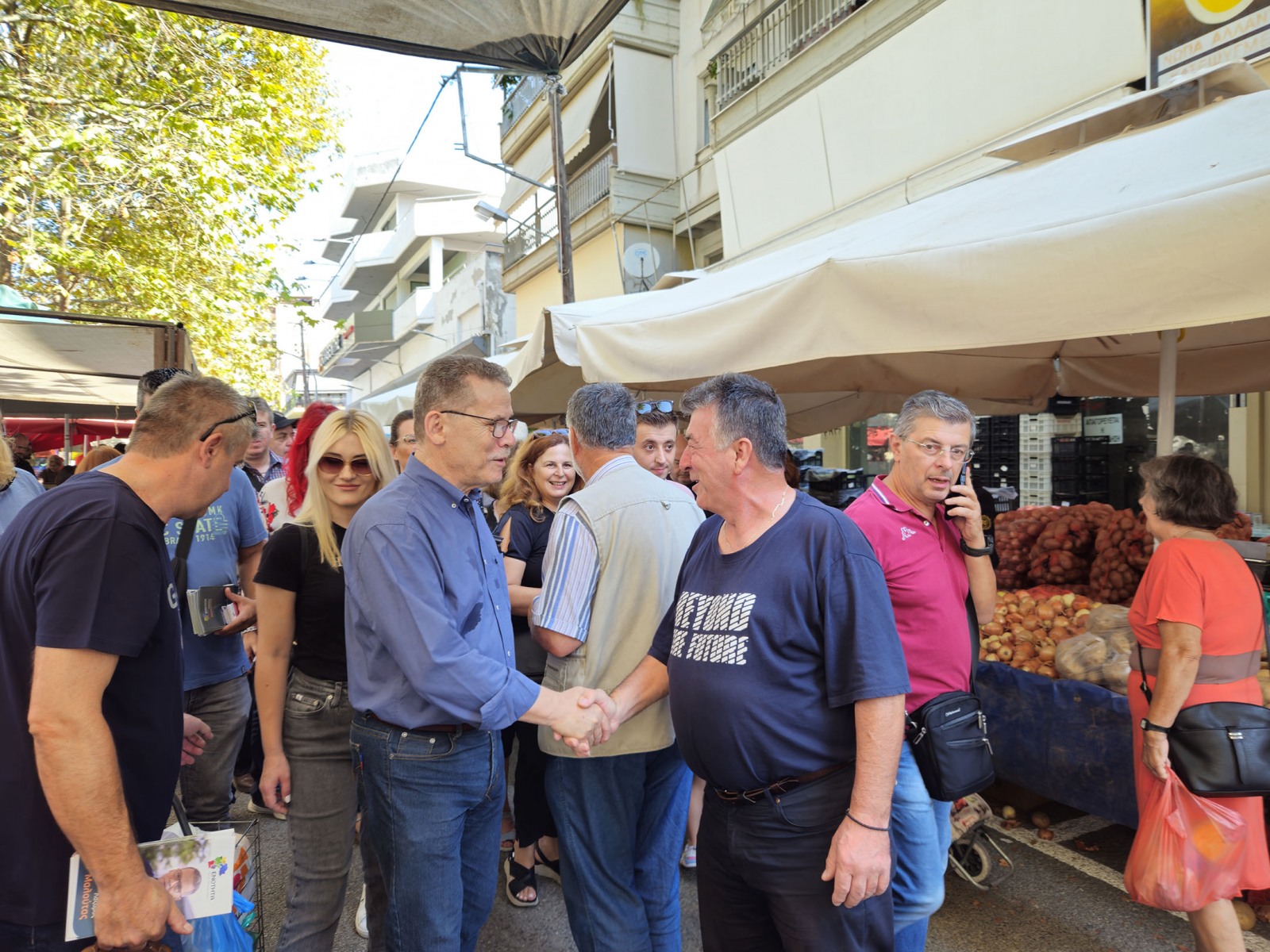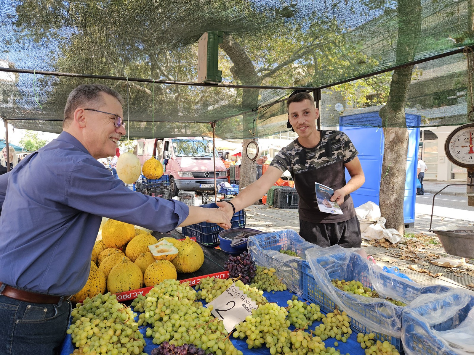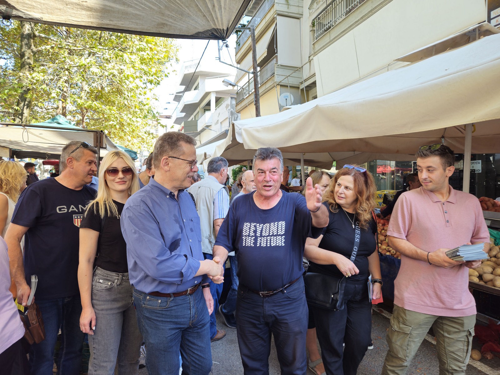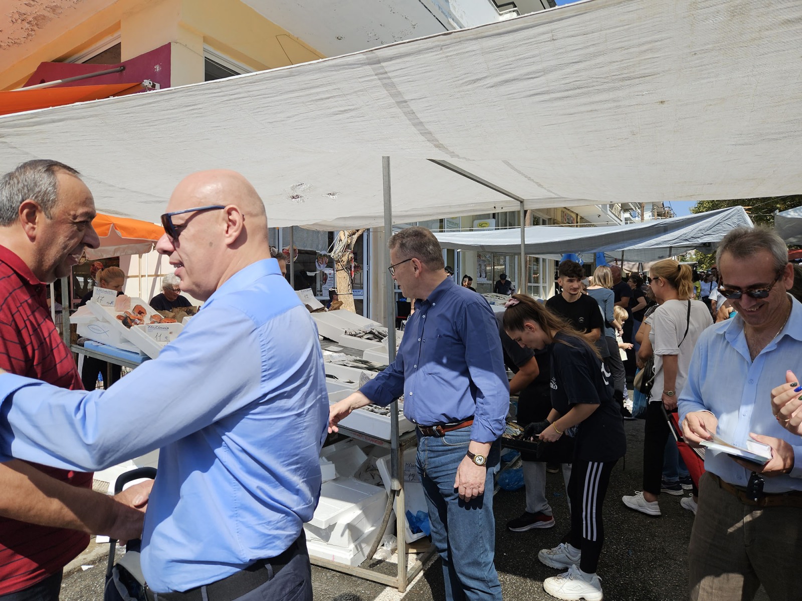Με παραγωγούς, εμπόρους και καταστηματάρχες συνομίλησε ο Λάζαρος Μαλούτας, κατά την περιήγησή του στη λαϊκή αγορά Αριστοτέλους, καθώς και σε καταστήματα του κέντρου της πόλης της Κοζάνης, το πρωί του Σαββάτου.