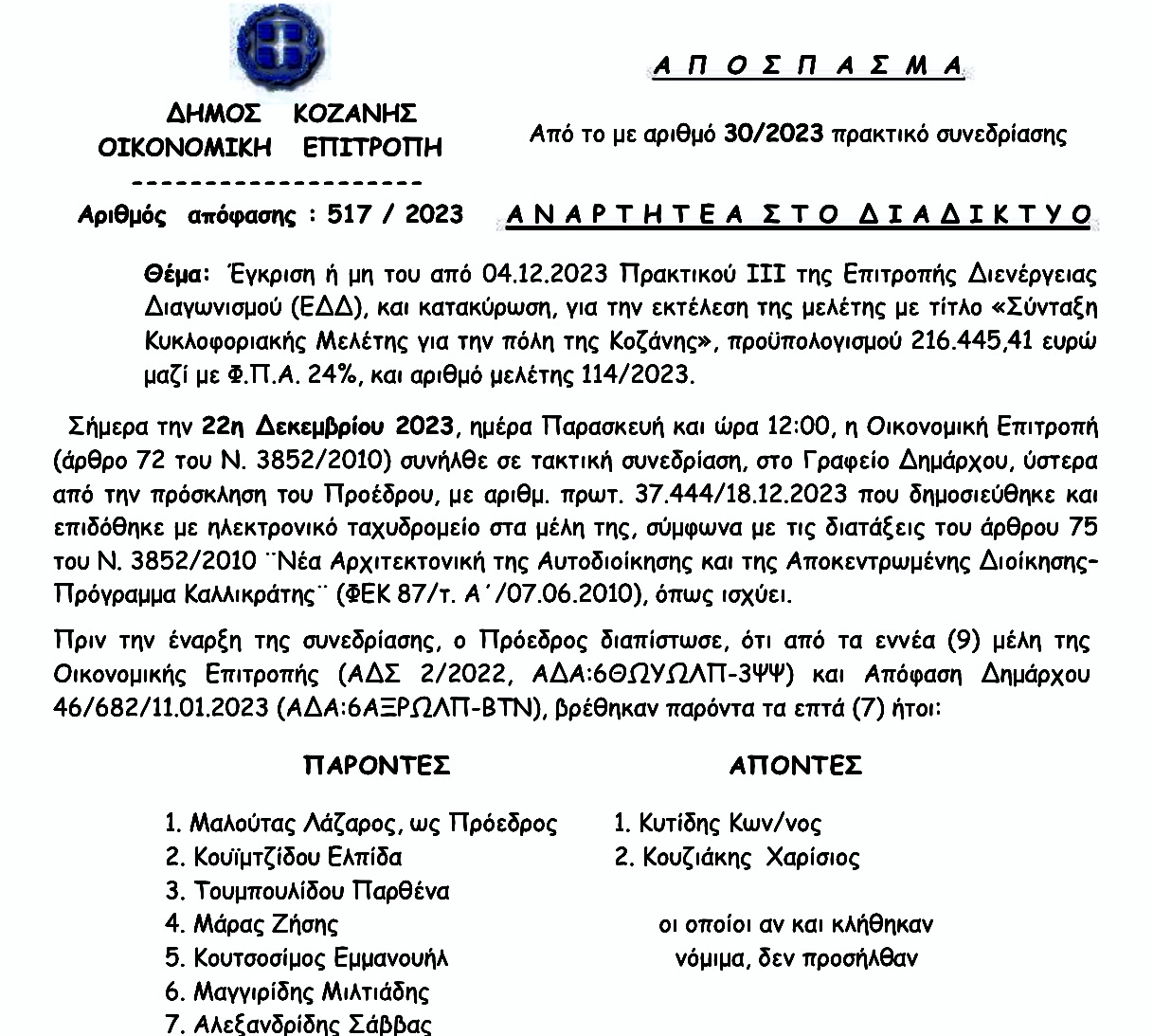 Ξεκινά η εκπόνηση της κυκλοφοριακής μελέτης για την πόλη της Κοζάνης