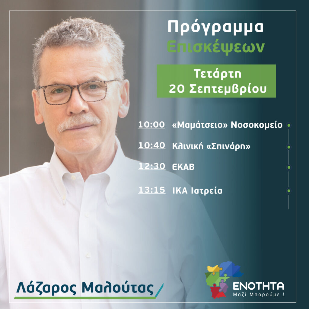 Ο Λάζαρος Μαλούτας συναντά τους πολίτες – Πρόγραμμα επισκέψεων Τετάρτης 20ης Σεπτεμβρίου