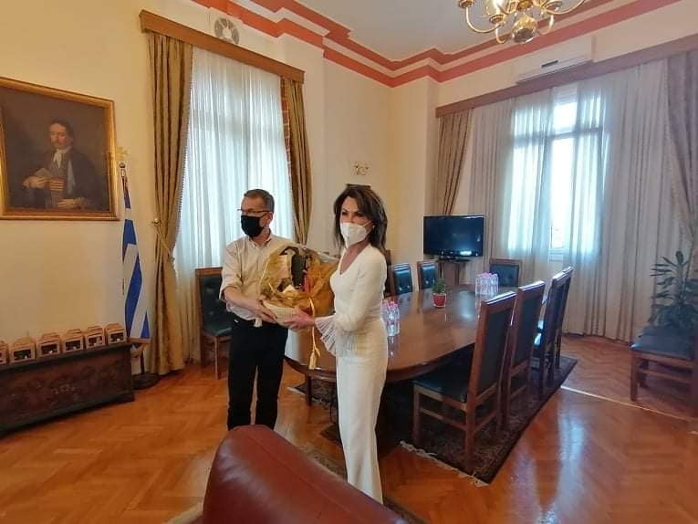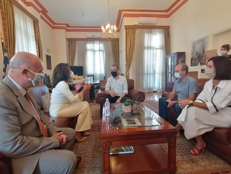 Η πρόεδρος ξεναγήθηκε από το Δήμαρχο Κοζάνης Λάζαρο Μαλούτα στο Βιοκλιματικό Σχολείο στη Ζώνη Ενεργού Πολεοδομίας, το Δημαρχείο, καθώς και την Κοβεντάρειο Δημοτική Βιβλιοθήκη.