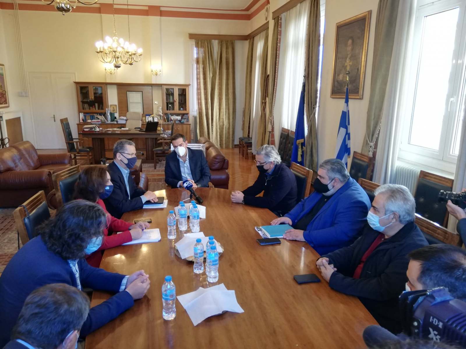 Γνωρίζετε ότι θέλουμε να αποφύγουμε να βάλουμε περιοχές στο κόκκινο, να κλείσουμε δηλαδή ένα μέρος της οικονομικής δραστηριότητας, αυτό μπορούμε να το κάνουμε μόνο αν έχουμε και τη δικιά σας συνεργασία. Και τη συνεργασία μπορούμε να την έχουμε σε δύο επίπεδα. Πρώτον στο επίπεδο της ενημέρωσης. Εσείς μπορείτε να μιλήσετε πολύ καλύτερα τη γλώσσα των τοπικών κοινωνιών και να εξηγήσετε όχι τόσο στους μεγαλύτερους αλλά κυρίως στους νεότερους συμπολίτες μας, γιατί η ατομική ευθύνη είναι η άλλη όψη του νομίσματος της κοινωνικής αλληλεγγύης. Με το να προσέχουν οι νέοι δεν προστατεύουν μόνο τους εαυτούς τους από μία ασθένεια που μάλλον δεν θα τους επηρεάσει πολύ, αλλά φροντίζουν και τους φίλους τους, κυρίως τους γονείς τους τους παππούδες και τις γιαγιάδες τους. Και βέβαια το δεύτερο το οποίο μπορείτε να κάνετε και έχετε τη δυνατότητα είναι να μας βοηθήσετε -τυπικά και άτυπα- και νομίζω ότι καταλαβαίνετε ακριβώς τι λέω, στους ελέγχους οι οποίοι πρέπει να γίνουν αγαπητέ πρόεδρε, ώστε να σιγουρευτούμε ότι ειδικά στον τομέα της εστίασης και της διασκέδασης τα μέτρα τα οποία έχουμε εξαγγείλει τηρούνται και τηρούνται στο ακέραιο.