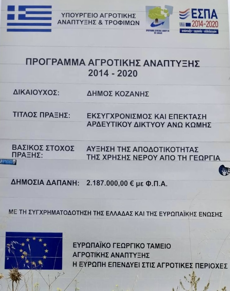 ✅ Ο εκσυγχρονισμός και η επέκταση του αρδευτικού στην Άνω Κώμη είναι φανερό ότι συμβάλλει στην αποδοτικότητα των καλλιεργούμενων εκτάσεων και φυσικά στην διεύρυνση των δυνατοτήτων απασχόλησης στον πρωτογενή τομέα.
